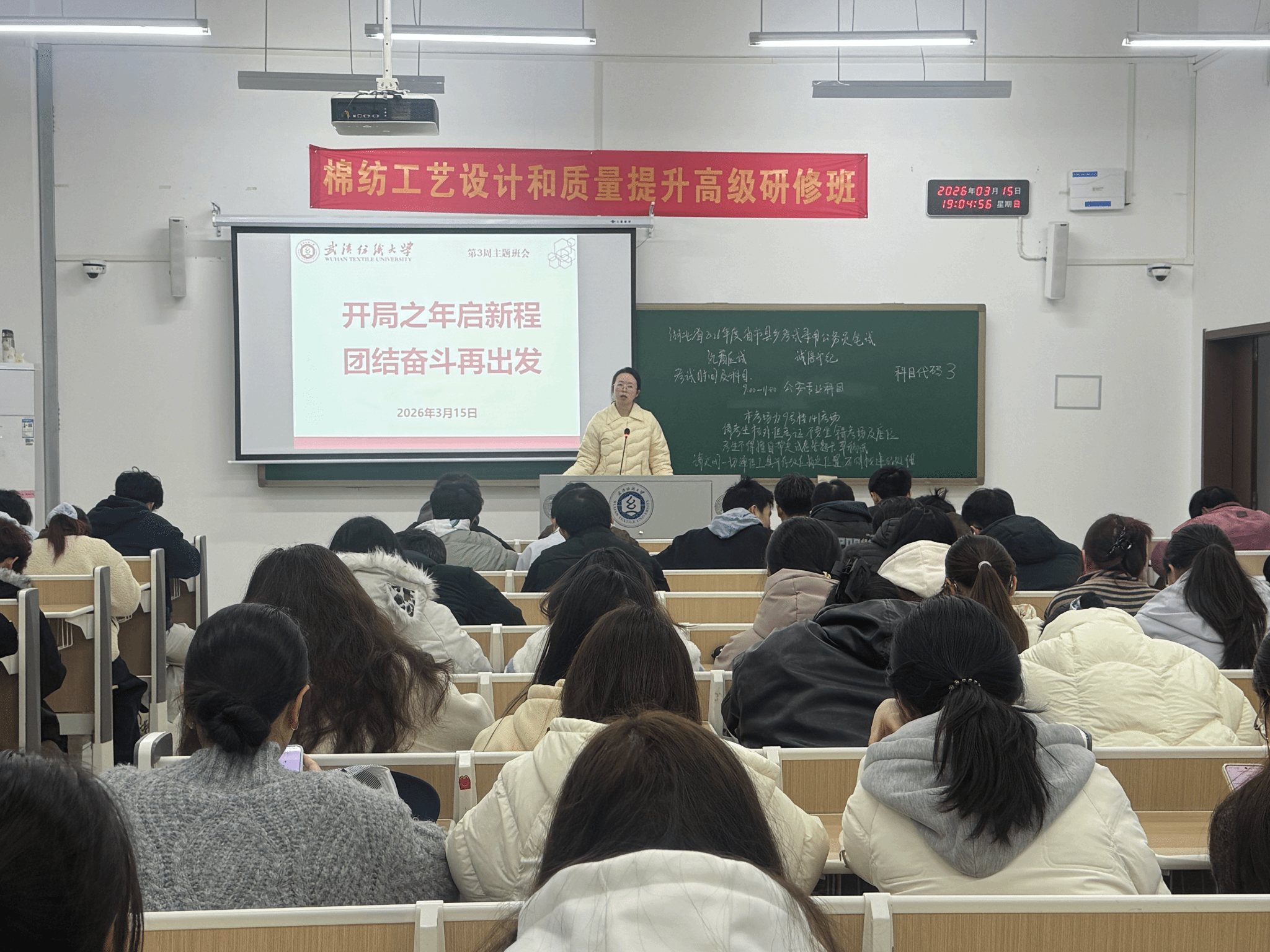 结合纺织学科特色,师生共同学习了两会上的“纺大声音”。从航空航天用的高性能纤维,到智能可穿戴纺织品的创新应用,生动的案例让学生们深刻领悟到徐卫林院士提出的“没有落后的产业,只有落后的技术”的深刻内涵。同学们纷纷表示,作为新时代的纺织学子,需扭转对传统纺织的刻板印象,在“十五五”新征程中找准自己的科研和学习方向。