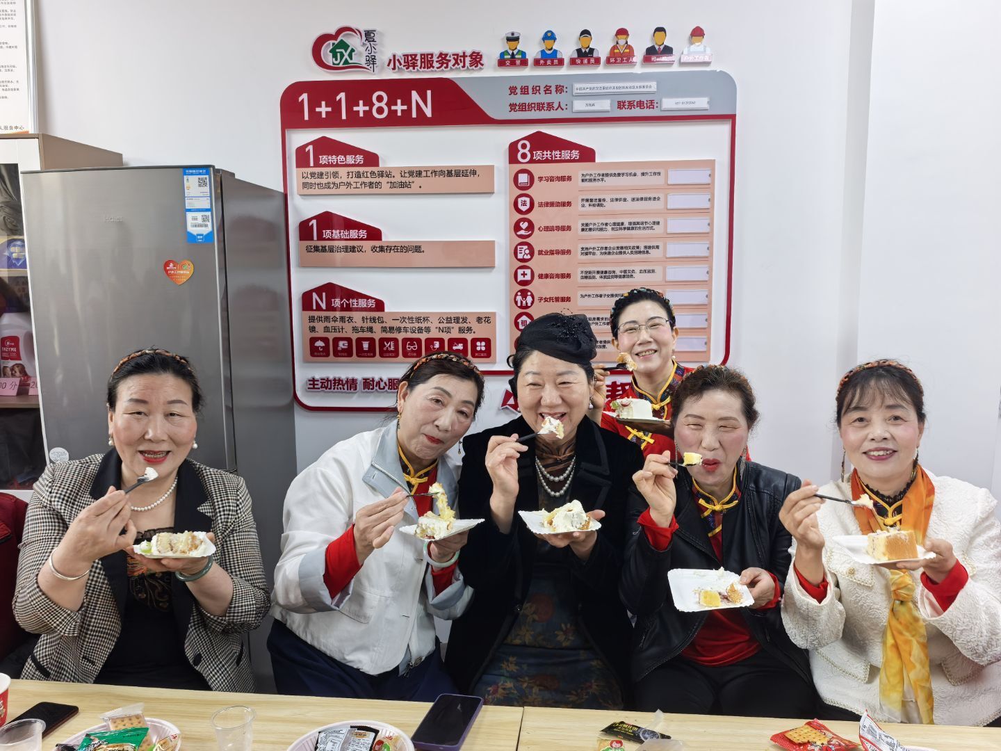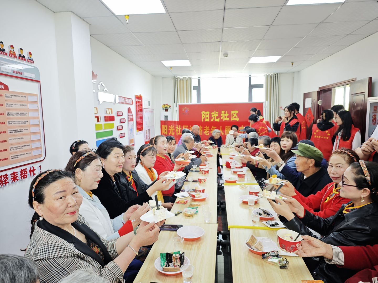 上午10生日会仪式正式拉开帷幕。志愿者合力将缀满新鲜水果的生日蛋糕缓缓推至会场中央。悠扬的生日歌响起,全体志愿者与寿星、社区工作人员一同打节拍合唱。歌声落毕,志愿者将切分好的蛋糕一一送至每位老人手中,老人们品尝着香甜蛋糕,脸上漾开幸福笑意,现场暖意融融。