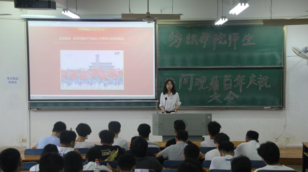 百年建党祝华诞,创新劳动显真章。纺院学子纷纷表示看完现场直播后心潮澎湃,为中国共产党100年来取得的成就感到震撼和自豪。作为当代青年大学生,我们要认真学习贯彻习近平总书记重要讲话精神,继续以新的伟大实践书写未来美好篇章,全面推进党的建设新的伟大工程,全面推进中国特色社会主义伟大事业。在这个伟大的新时代里,乘势而上,担当作为,坚定理想信念、奋勇前进,在今后的工作中要把强烈的爱党爱国热情转化为干好本职工作的实际行动,走好我们这一代的长征路,并以实际行动庆贺中国共产党成立100周年!