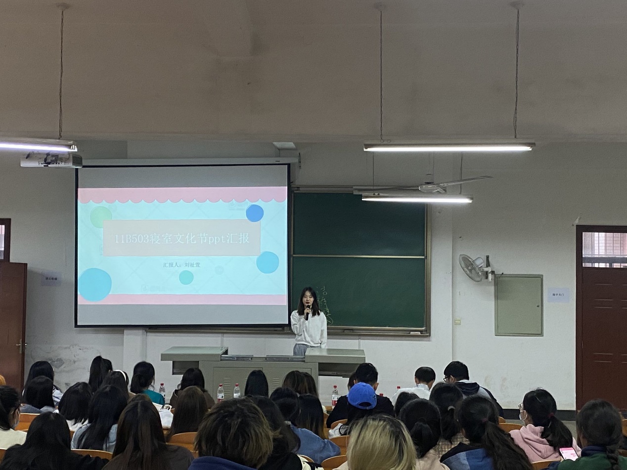 活动伊始,陈海副书记以“洁”、“静”、“雅”“美”为主题对宿舍优良氛围的重要性进行了详细阐释,提出希望纺院学生能够以宿舍为起点,营造良好的学风;张竣青老师则强调了此次寝室文化节活动目的和意义,并表示期待即将登场同学的精彩展示。接下来,各个寝室的代表开始对彰显自己寝室文化的专属PPT进行展示,内容包括寝室人员介绍、寝室日常生活、寝室学习和目标等方面,充分展现了各个宿舍不同的寝室风格,更展现了同学们远大的理想与目标。丰富的寝室文化让大家感受到了各个寝室成员积极向上的学习态度和他们对寝室生活的热情,同时也让大家体会到了舍友间真挚的友情和温馨的寝室氛围。