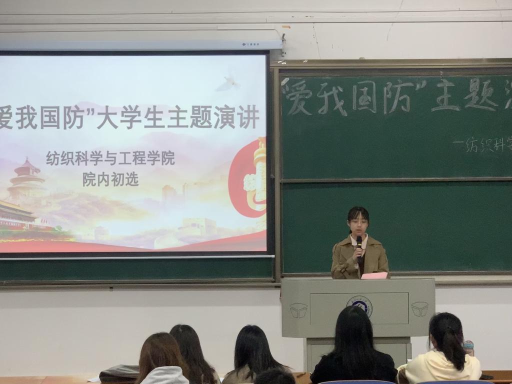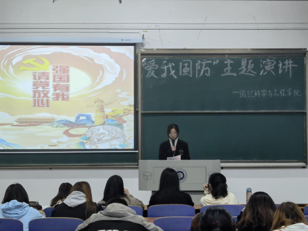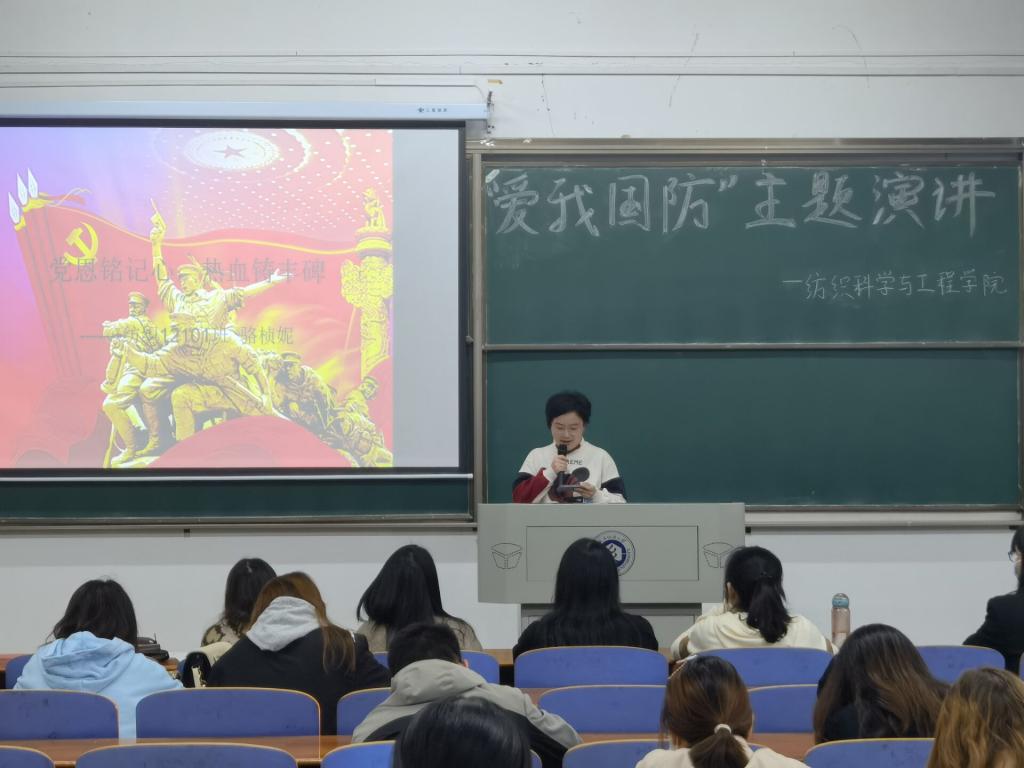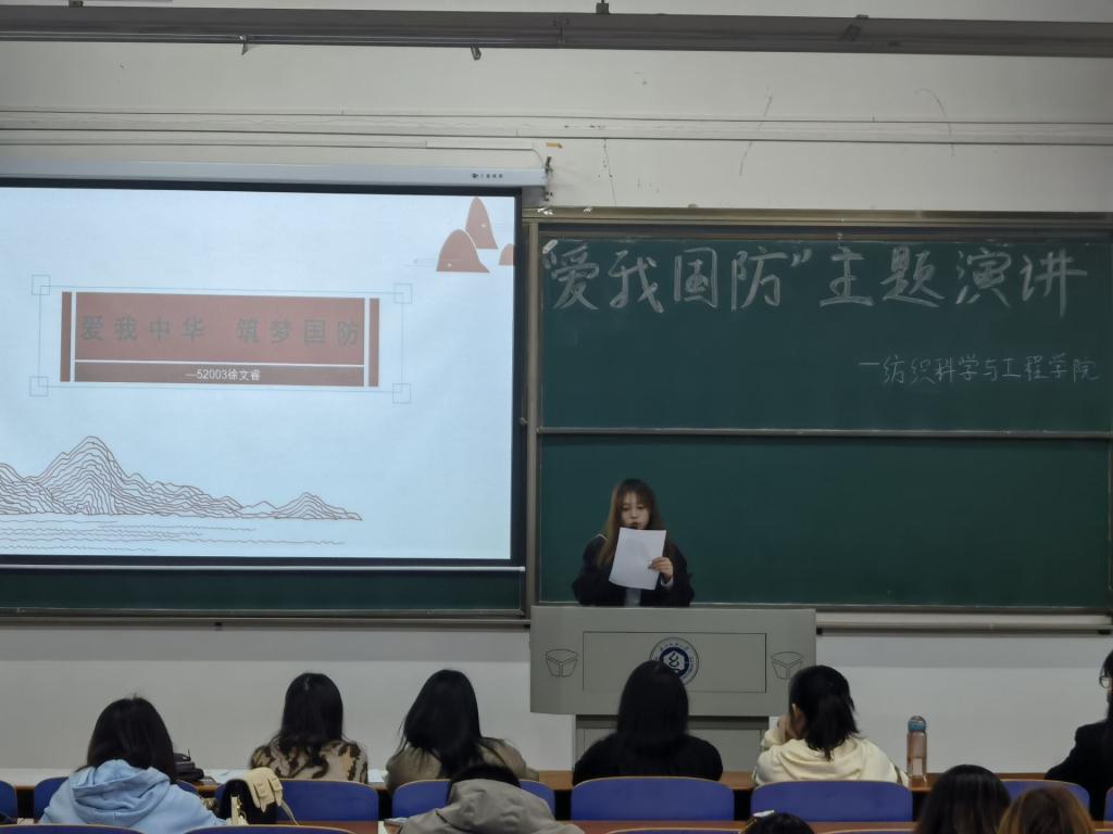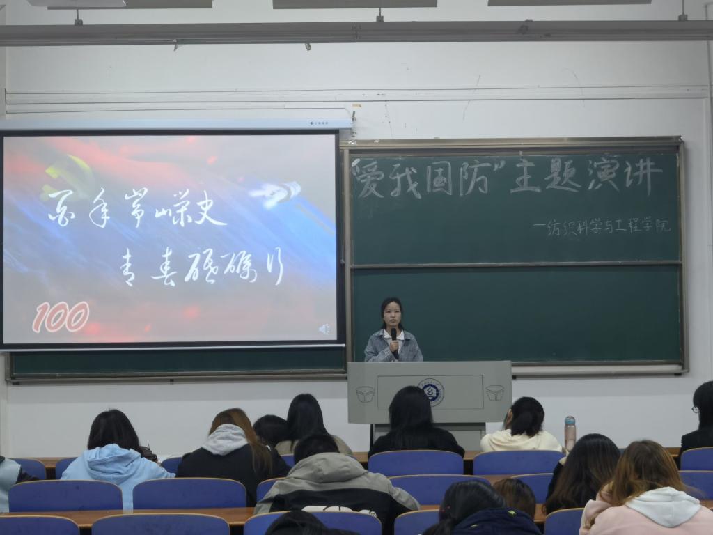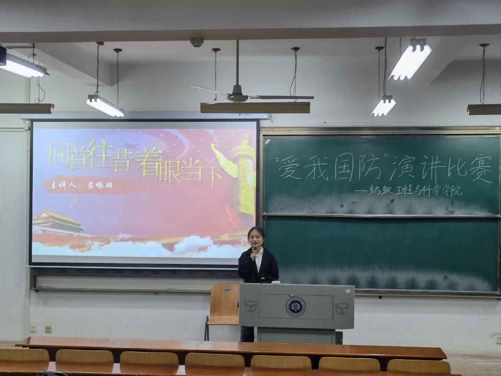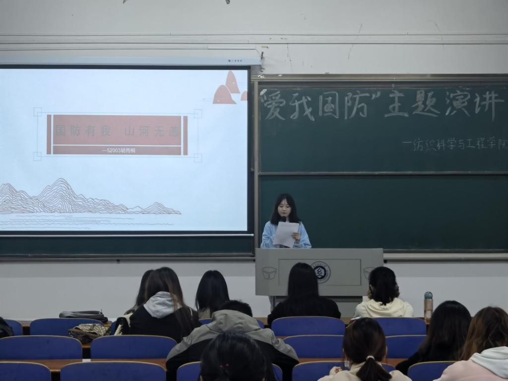 樊子靖及葛佳莉同学以“ 爱我国防,共筑长城”为题,用双人演讲的形式,绘声绘色地从现在的立场回顾百年征程,又从历史的角度看当今国防;冯林同学以“爱我国防,扬我国威”为题,结合梁启超、彭恒武、苏宁等爱国英雄,从军人、青年、国力三方面强烈表达了“犯我中华者,虽远必诛!”的国防决心;吕咏琳同学以“回首往昔,着眼当下“为题,在演讲中穿插歌曲,为同学们带来了身临其境的历史感,激励着青年一代奋勇直前。