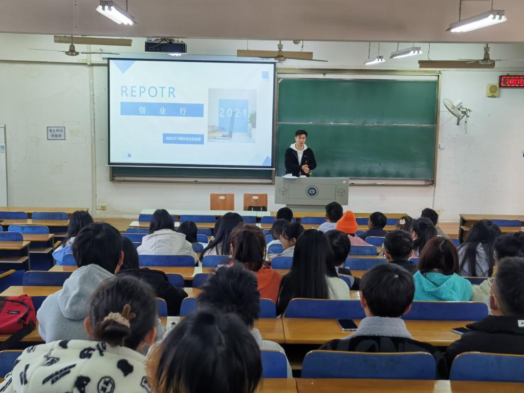 于12月2日14点在3号教学楼116教室,面向各年级学生代表举行了创业典型代表报告会,大会邀请了2019届优秀本科毕业生张亚康为同学们作报告。