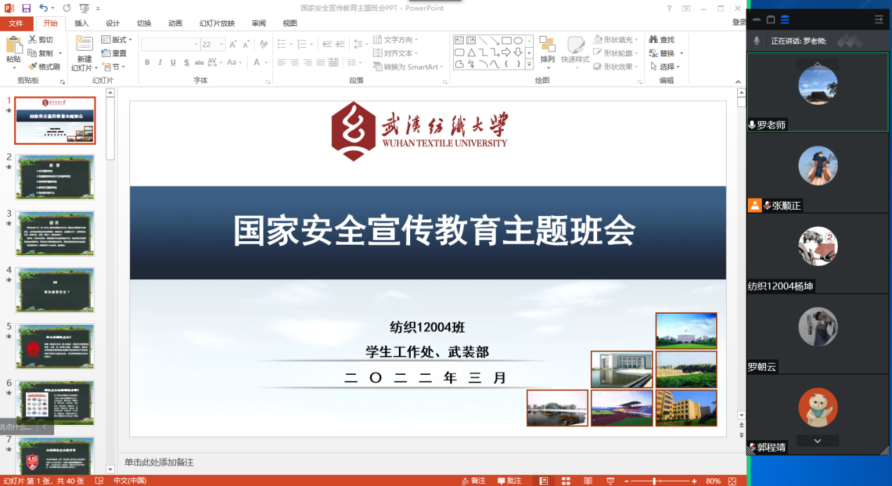 班会上,各年级辅导员、班主任老师组织带领同学学习了《国家安全法》、《反间谍法》、《反恐怖主义法》等法律,并观看了专题教育片《护航之道—总体国家安全观纵横》。通过学习,同学们深刻领会和掌握总体国家安全观的重大意义和精神实质,进一步树立了国家安全人人有责,人人尽责的观念,增强依法规范和打击危害国家安全行为的法律意识,提高履行法律责任义务的自觉性,为维护国家安全营造了良好的法制氛围。在当下的疫情防控大背景下,更是一次生动的大思政课——引导广大学生正确认识疫情形势,不造谣、不信谣、不传谣。