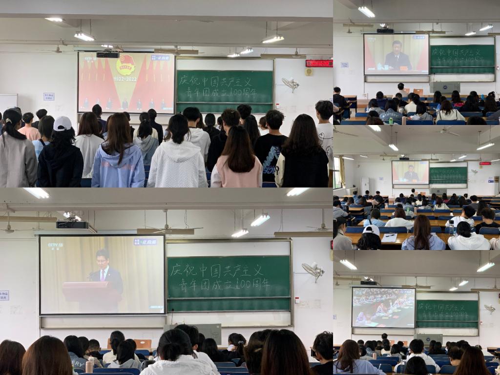 团委组织全体学生线上线下同步观看庆祝中国共青团成立100周年大会,学习习近平总书记在会上发表的重要讲话,共同回顾中国青年百年历程,领会新时代青年精神,了解青年肩负的时代责任,认清青年发展目标。