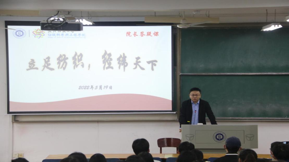 随后,蔡院长针对学生关注的问题进行一一解惑。他对比了纺织类高校在学科排名、师资队伍建设、就业等方面情况,分析了我校历年考研和就业数据,为学生学业、职业规划发展提供借鉴。针对“纺织人才需要掌握的核心能力”、“学习纺织的真实前景”、“纺织企业是不是夕阳企业“等问题,他表示,没有所谓的夕阳企业,只有夕阳技术,纺织技术日新月异不断更新,纺织专业学生在就业前景和发展潜力这一方面具有很大的优势,需要同学们不断学习,不断积累。纺织技术需要纺织人才进行不断地创新和推动,在如今纺织人才稀缺的环境下,技术就业情况是十分乐观的,由此鼓励同学们扎根纺织领域长久学习,由量变转化为质变,成为纺织领域的中坚力量。