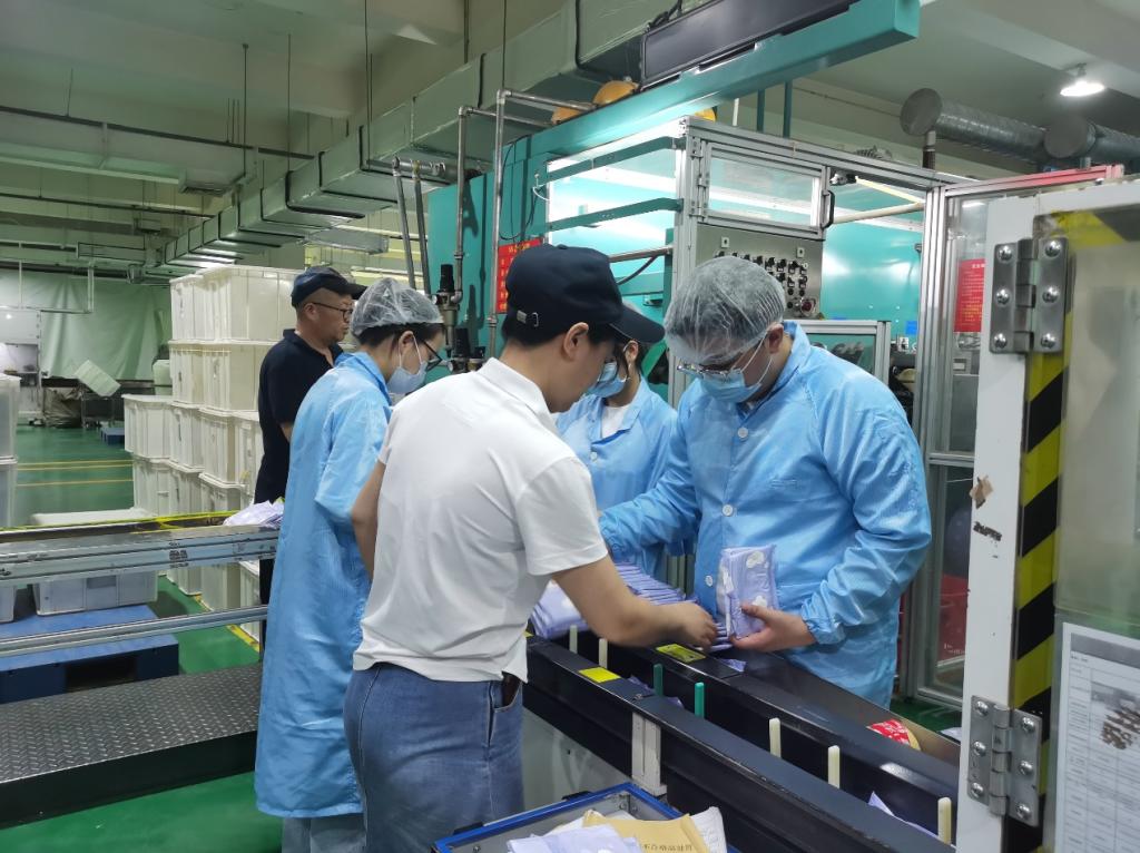 “随着时代的进步和发展,全自动机器生产已替代人工数字化 、智能化的不断提升使得生产效率大幅提高,丝宝集团洁婷工厂只需200多人,车间内设备运转声此起彼伏,工人井然有序的进行各自的工作,传送带飞快地来回游走。”这是武汉纺织大学纺编青春实践团在8月4日走访丝宝集团生产车间一线时所看到的一幕。