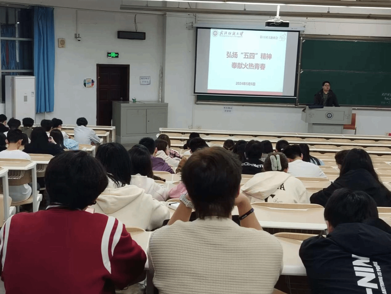 班会开始之际,余国铖老师以习近平总书记对广大青年的寄语为引,勉励同学们要在平时勤学苦练,保持创新思维,做创新思维的积极倡导者和率先践行者。同时,保持旺盛的好奇心,对想做爱做的事敢试敢为,敢于做先锋。随后,余国铖从形成背景、内涵、进步所在和价值蕴涵详细解读了五四精神。勉励同学们弘扬五四精神,将五四精神融入日常的工作学习中去,为实现中华民族伟大复兴的中国梦贡献自己的力量。