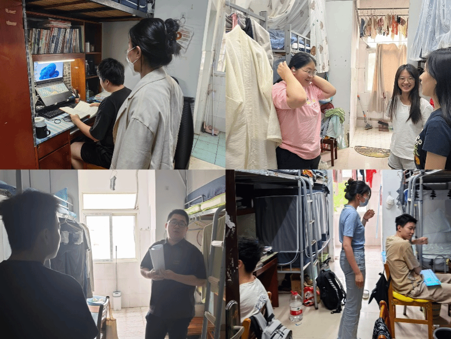 与此同时,辅导员们深入了解混寝同学的适应程度,关心其寝室关系,亲切询问同学们的假期安排、学习情况、生活需求等,以及是对基础设施的意见反馈。再次,辅导员们鼓励同学们加强宿舍的学风建设,营造良好的学习氛围,互相帮助、齐头并进,保障良好学风的形成。赵亮和吴童玲老师在检查毕业生宿舍时,关心毕业生离校后的安排,拉近师生的关系,描绘和谐融洽的美好画面。最后,老师们重点叮嘱同学们要提高防诈骗意识,警惕各种骗局,保护好个人财产。