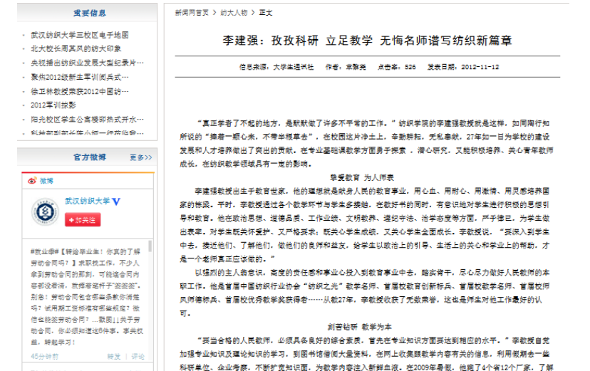 以强烈的主人翁意识,高度的责任感和事业心投入到教育事业中去,踏实肯干,尽心尽力做好人民教师的本职工作。他是首届中国纺织行业协会“纺织之光”教学名师、首届校教育创新标兵、首届校教学名师、首届校师风师德标兵、首届校优秀教学奖获得者……从教27年,李教授收获了无数荣誉,这也是师生对他工作最好的认可。