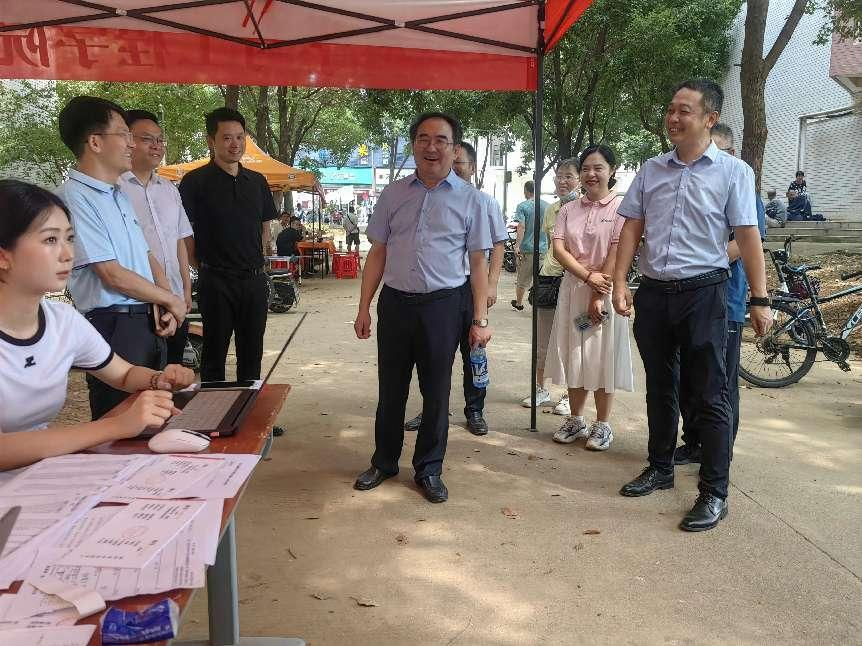 上午10时,武汉纺织大学党委书记田辉玉一行来到了免费足球直播 迎新现场指导迎新工作,走访一站式社区,询问了现场报到的基本情况,对新生表达了真切的关怀,问候了在场的志愿者同学们。