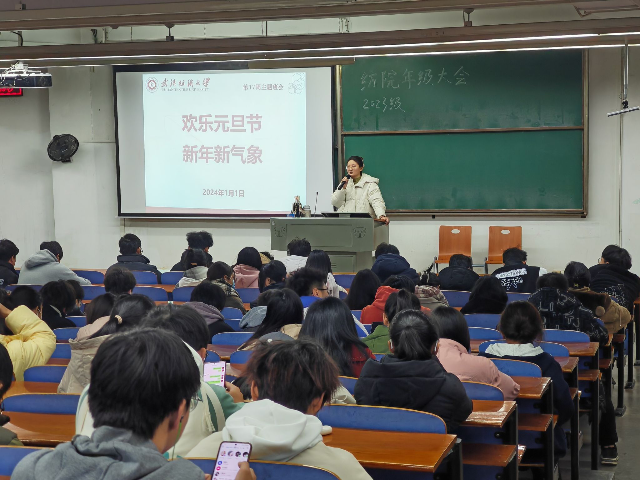 于2024年1月1日晚举行了本学期第十七周的晚点名班会。该主题班会旨在祝福同学们在新的一年里,继续保持奋斗状态,不断努力,不断进步。展现自己的才华和精神风貌,为将自己打造成更加优秀的人才而努力。