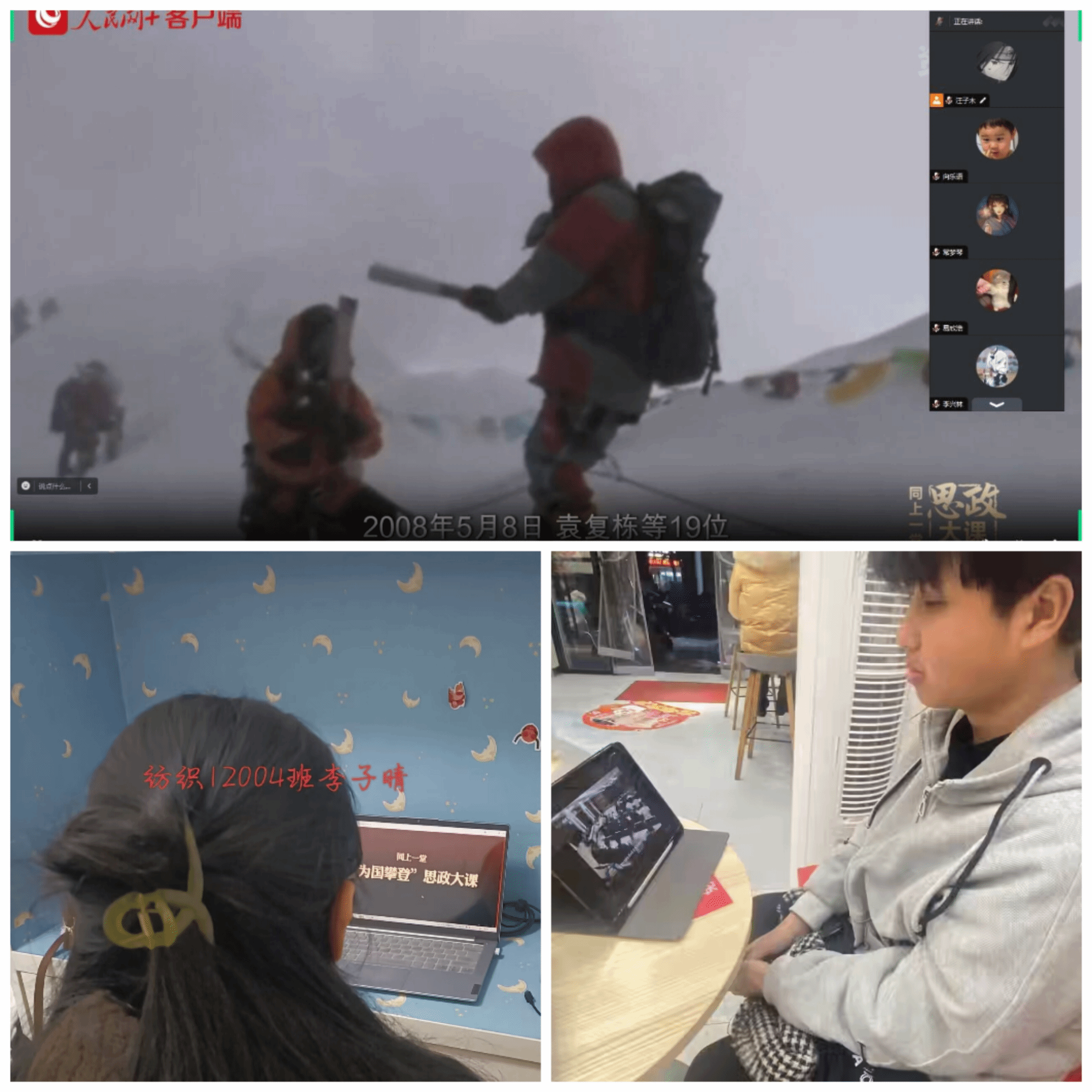 纺织52002班肖美慧表示:通过老师们的讲授,我仿佛看到了登山队员们面对生死攸关的时刻,始终保持着乐观、坚韧的精神。他们用自己的行动证明了只有每个人都发挥自己的作用,才能推动整个社会的发展和进步。非织12001班宋孜灿有感而发:通过观看直播课程,我深刻感受到了国家发展何社会进步都需要我们每个人的共同努力。无数个登山运动员奋勇攀登铸就了中国人的攀登精神。在新的学期,我将勇担时代使命,坚定理想信念,牢记攀登精神,勇往直前不断攀上人生新的高峰。