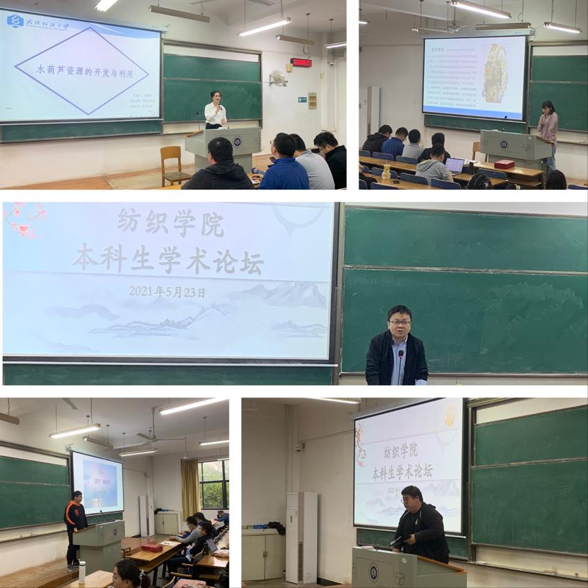 7名本科生做了主题报告。纺织 11801班谢雨珍同学做了题目为《高性能电磁屏蔽织物的研究》的主题报告,介绍了通过镀银纤 维和聚氨酯纤维加捻,用不同的编织方式形成具有良好电磁屏蔽,透气、柔软、 可调节的织物。纺织 11802 班郭世贸同学做了主题为《分散染料对聚酰亚胺的颜色构建》的报告,通过使用载体染色法以及分散染料,使得聚酰亚胺难染色问题得到进一步的突破。纺织 11803 班三彩虹同学做题目为《紫甘蓝色素酸碱变色与湿敏变色探究》的主题报告,通过对天然染料的研究,填补国内无重金属湿度敏感变色材料的技术开发。纺织 51801 班汤恒星同学做题目为《一种具有间隔色彩的新型纱线》的主题报告,通过调控 有色涤纶长丝与原棉纤维的内外转移运动,从而获得具有间隔色彩效果的涤棉复 合纱。纺织 51802 班杨青青同学做题目为《“共织型”柔性防弹层》的主题报告,通过利用纺织技术将针织结构与机织平纹结构相结合的方法,达到更好的弹道防护性能。纺织 51803 班肖惠同学做题目为《可拉伸导电纱线》的主题报告,通过利用高弹性氨纶长 丝改善导电纱线的拉伸性。非织 11801 班范静媛同学做题目为《水葫芦资源的开发与利用》的主题报告,通过将水葫芦 秸秆加工成污水处理吸附剂,同时解决水葫芦泛滥和污水污染问题。