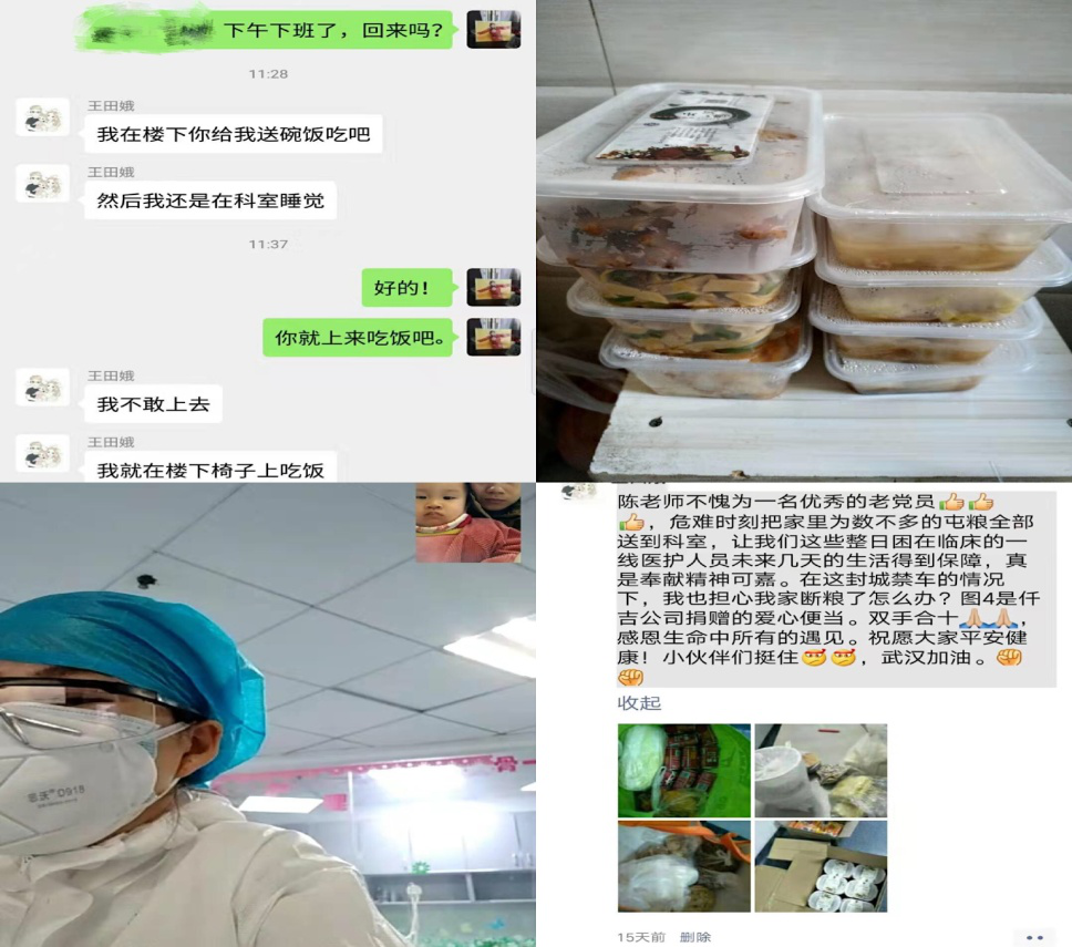 “疫情就是命令,防控就是责任,整整4个多小时,一口水没喝,穿着防护服闷出了一身汗”。王田娥,武汉市汉阳医院骨一科护士,是免费足球直播 青年教师陈志军老师的妻子,汉阳医院是武汉新冠肺炎发热门诊定点医院,疫情暴发以来,王田娥和同事被抽调到发热门诊支援一线,在医用物资紧缺的情况下,克服困难,和家属一起携手共渡难关。为防止疫情扩散和交叉感染,这些白衣天使们全部吃住在科室,连续十几天都没有回家了。王田娥的孩子经...