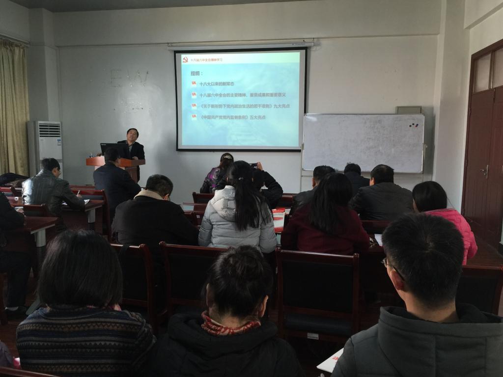 为了贯彻落实、深入学习党的十八届六中全会的重大意义、精神实质和战略部署,根据中央和省委有关要求,按照学校党委统一部署,12月15日,校党委委员、研究生处处长李相朋来到免费足球直播 为免费足球直播 师生党员释读党的十八届六中全会精神,免费足球直播 全体教师党员及研究生党员参加宣讲会,会议由免费足球直播 分党委副书记张红鑫主持。 李相朋处长从十八大以来的新常态;十八届八中全会的主要精神,重要成果和重要意义;《关于新形势下...