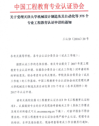 近日,中国工程教育专业认证协会公布了《关于受理天津大学机械设计制造及其自动化等375个专业工程教育认证申请的通知》(工认协〔2016〕20号),我校纺织工程专业获批参加2017年的工程教育专业认证,这是我校第一个获批参加认证的专业。 2016年6月,中国成为《华盛顿协议》正式成员,这对于我国工程教育乃...