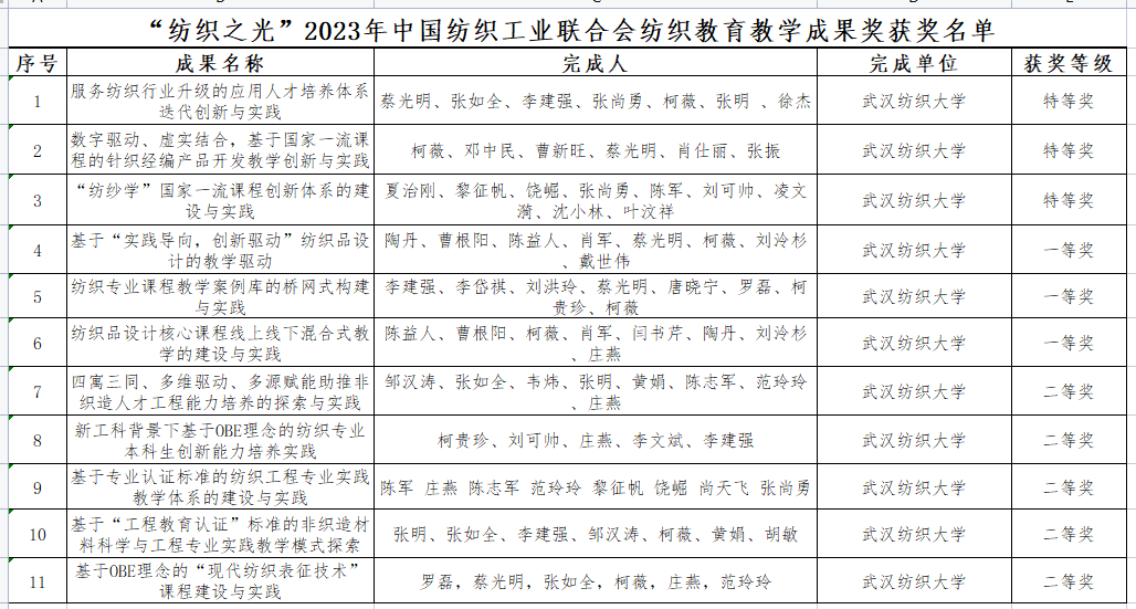 喜报!我院获11项“纺织之光”2023年度中国纺织工业联合会纺织高等教育教学成果奖